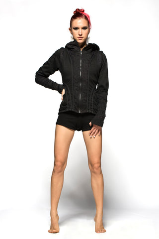 Women Convertible Hooded 2-in-1 Jacket with front zipper HARMONY Black