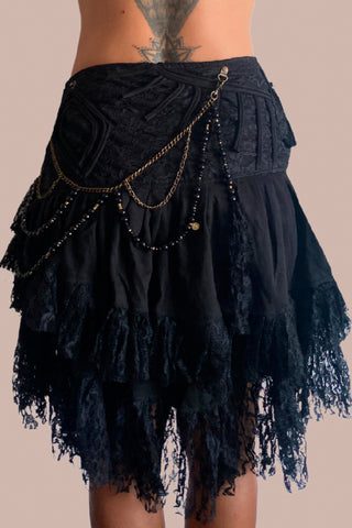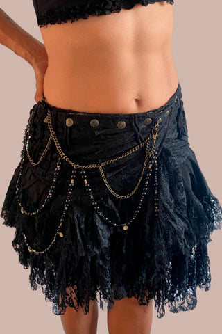 Women 2 in1 Wrap Around Ruffled Skirt with hand made Belly Chain MAGICAL Black