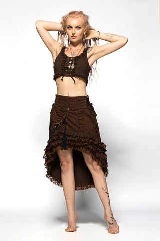 Women 2 in1 Wrap Around Ruffled Skirt with hand made Belly Chain MAGICAL Dark Brown