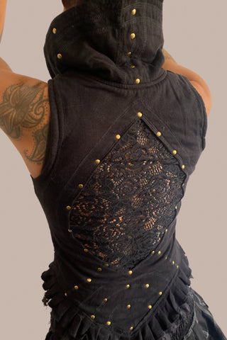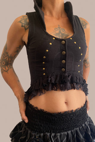 Women Long Skirt with adjustable corseted string and Hand mad Belly Chain LOVELY Black