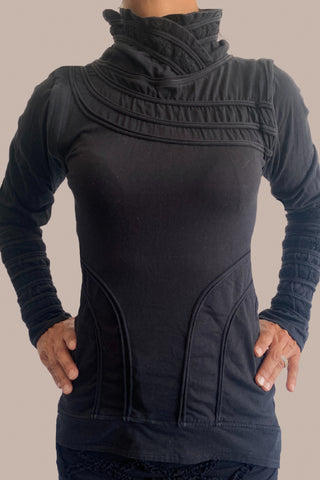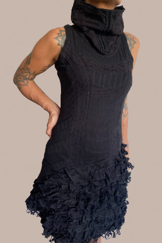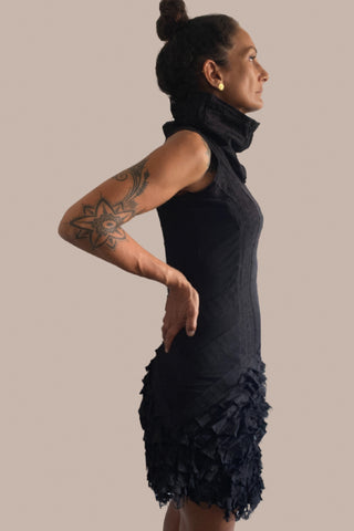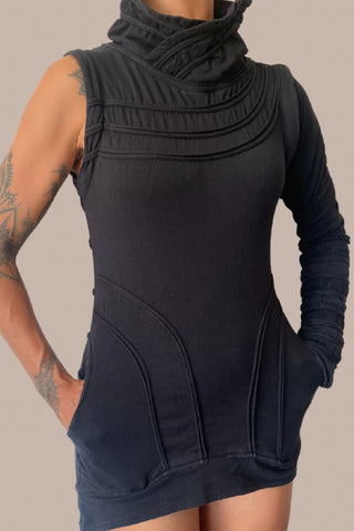 Women High Neck Jumper/Dress with removable sleeves and 2 lateral pockets CLASSIC Black