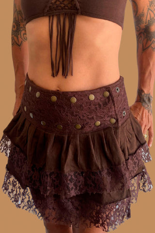 Women 2 in1 Wrap Around Ruffled Skirt with hand made Belly Chain MAGICAL Dark Brown