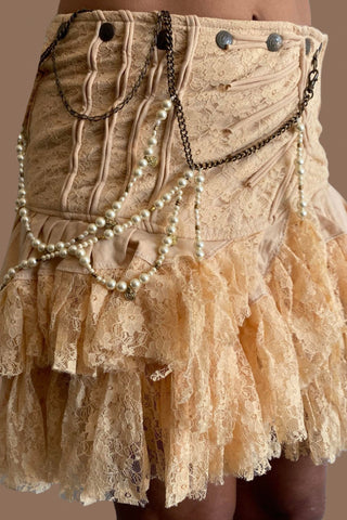 Women Wrap Around Ruffled Skirt with Hand-made brass beads Belly Chain POWERFUL Cream
