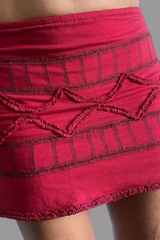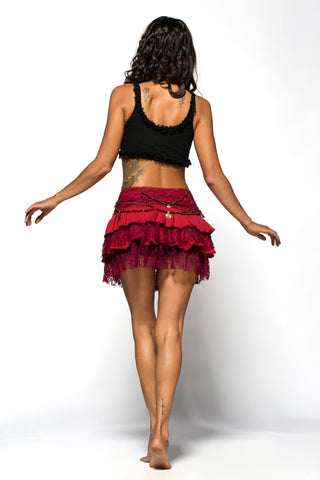 Women Mini Skirt with Elastic waist belt and stretch Lace WITNESS Red