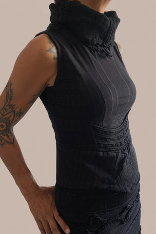 Women High Neck Jumper/Dress with removable sleeves and 2 lateral pockets CLASSIC Black