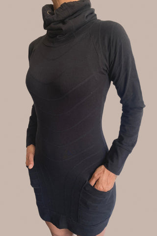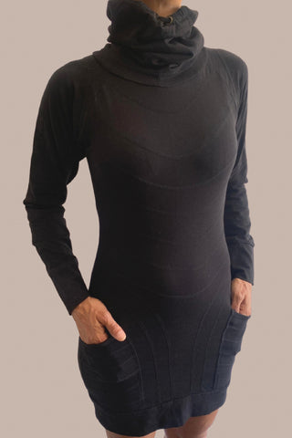 Women High Neck longsleeves Jumper/Dress with 2 lateral pockets EASY Black